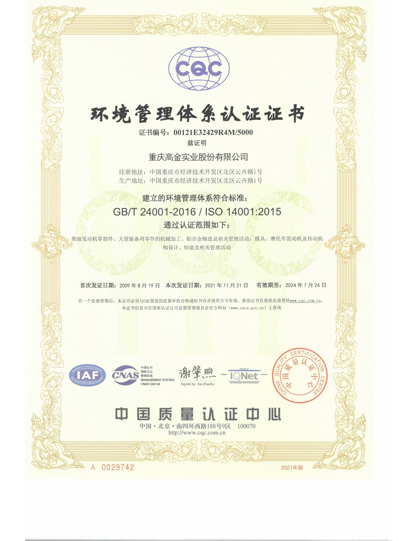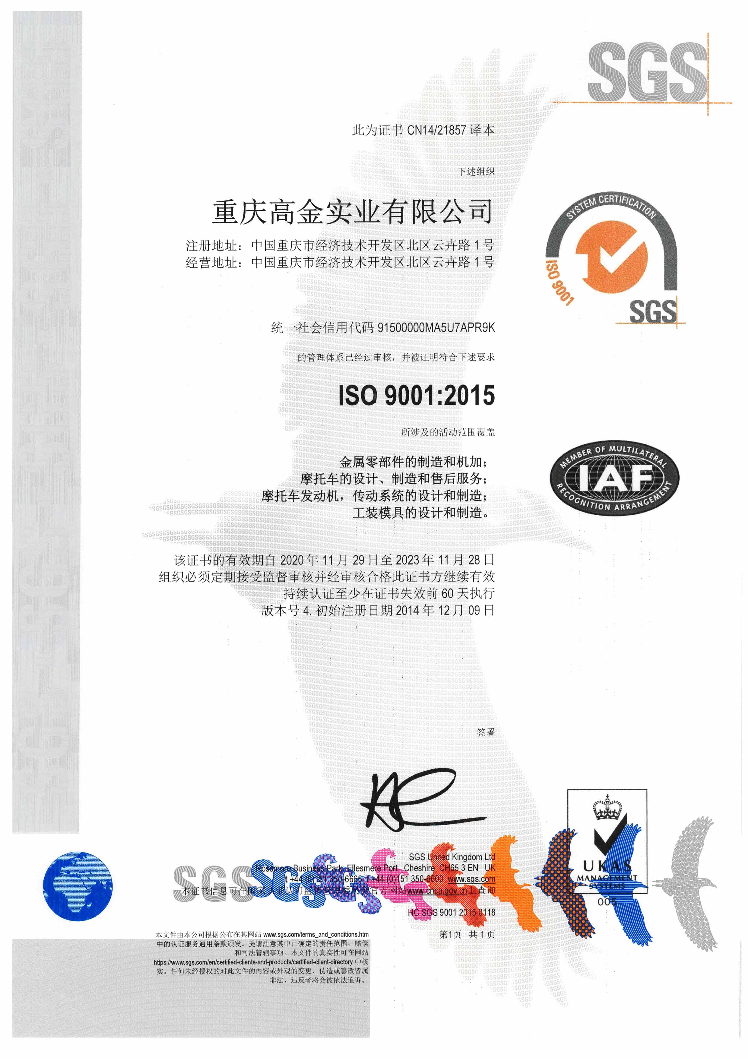 重慶高金實業股份有限公司始建于2006年,位于重慶市兩江新區,距離重慶江北國際機場、重慶寸灘保稅港和重慶火車北站距離均為10公里左右,公司占地面積8萬余平方米,現有員工900余人,其中產品研發人員270余人。主營業務為大排量摩托車整車、摩托車發動機及傳動系統的研發、制造和銷售以及精密機器加工、模具設計與制造、鋁合金鑄造。