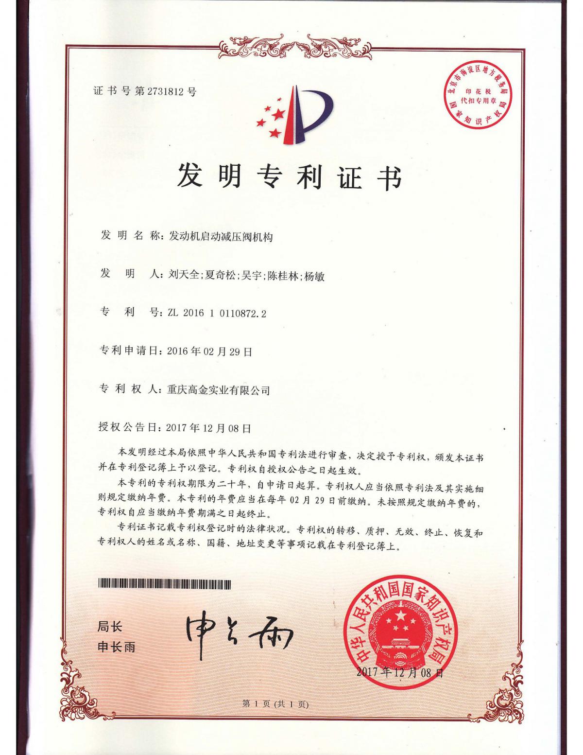 • 發明專利(啟動減壓閥)