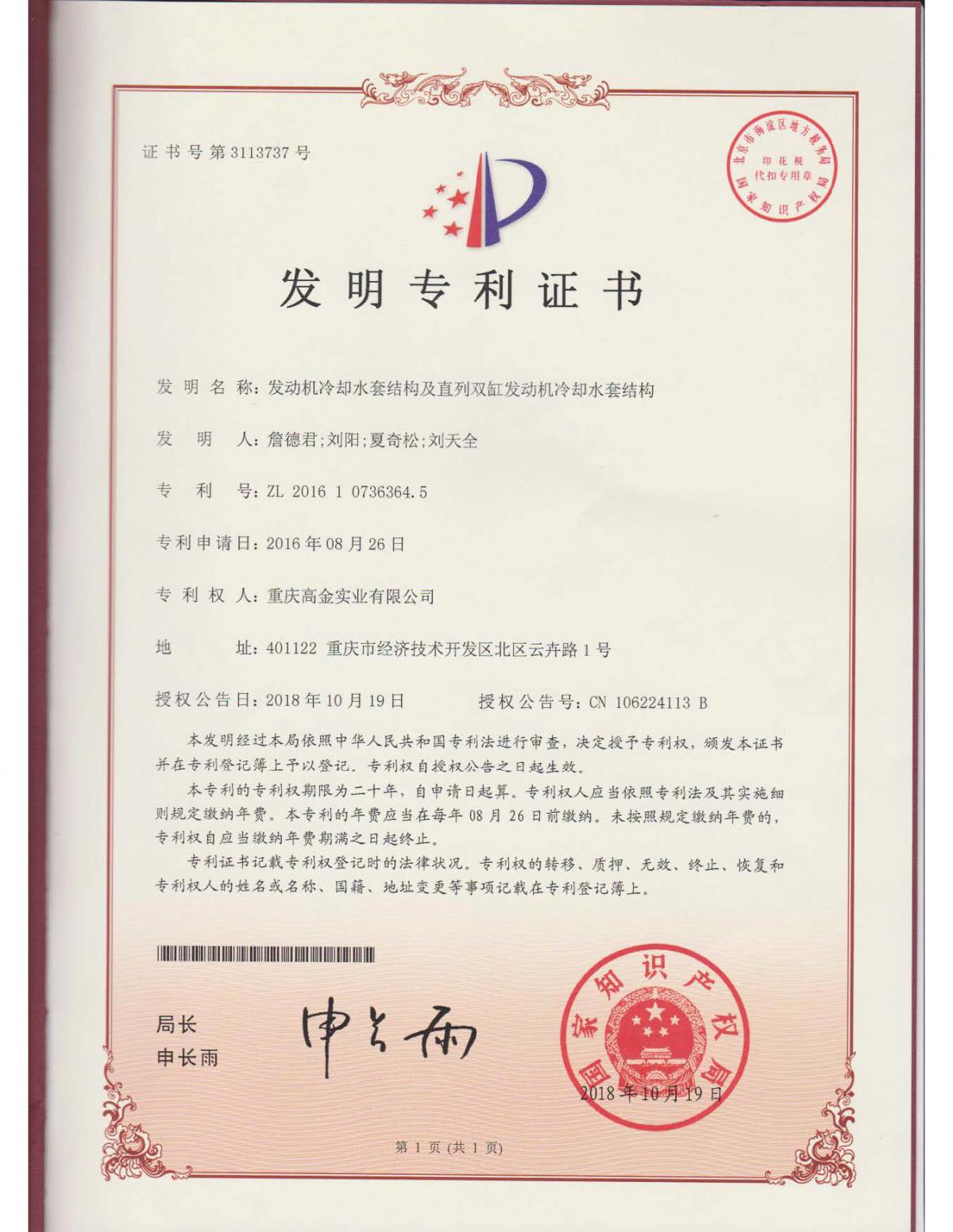 • 發明專利(冷卻水套)