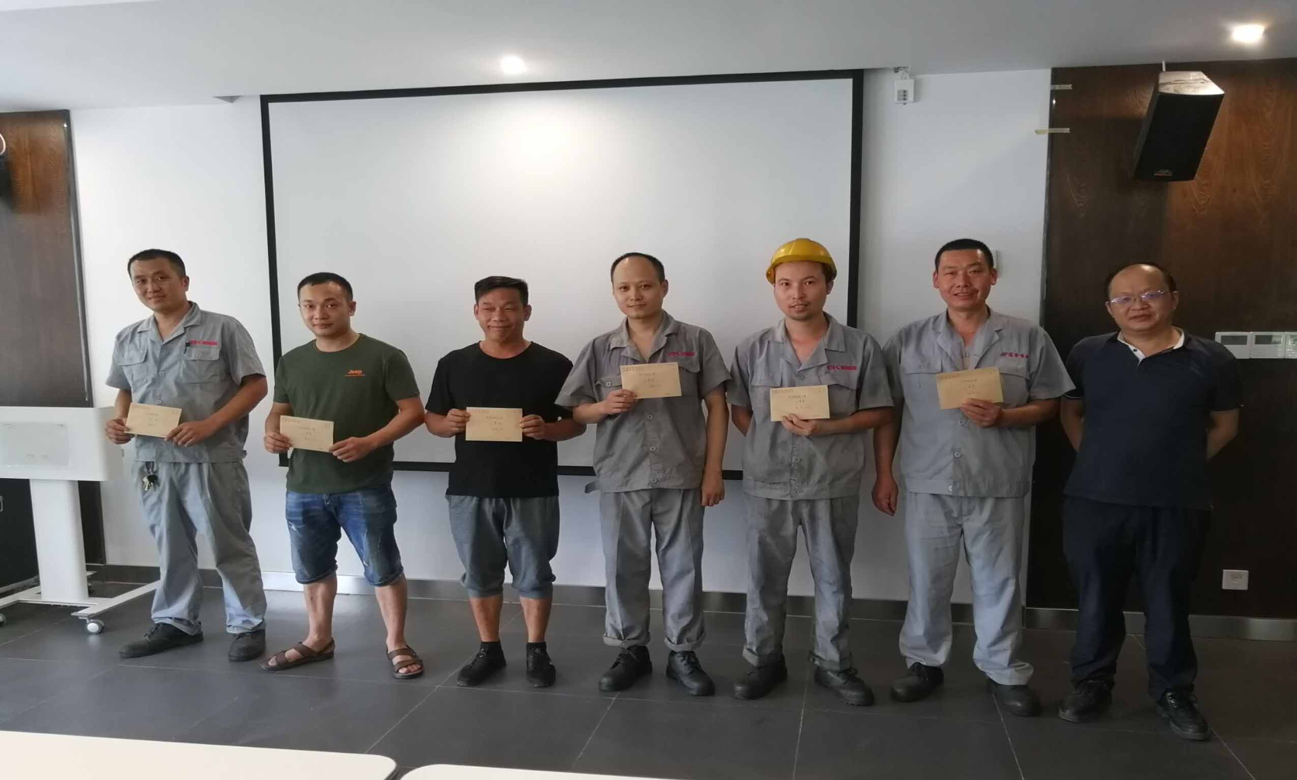 比賽為個人項目,本著部門推薦和自愿報名的參賽原則。公司所有持有行車操作資格證書、具備行車操作技能且通過公司內部行車操作資格考核的員工均可報名參賽。本次比賽有30多名員工報名參賽,在經過理論測試和實作技能比賽兩輪激烈角逐后,最終以下員工表現優異,取得了好成績獲得獎勵: